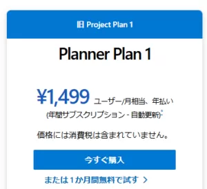 単品版 Project 2024(プロジェクト)とPlanner Plan 1 (旧 Project Plan 1)の価格の違いは次の通りです。