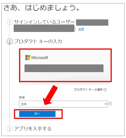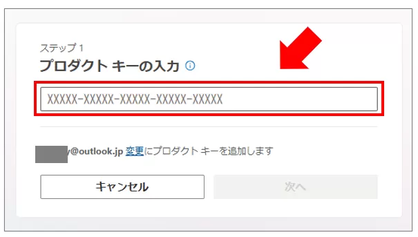 - 入力: プロダクトキーを入力し、アカウントにライセンスを紐付けます。