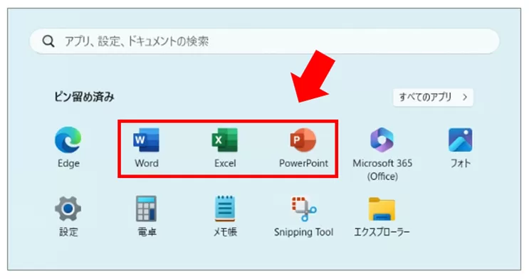 インストールが完了したら、スタート画面よりExcelやWordなどアプリを起動します。