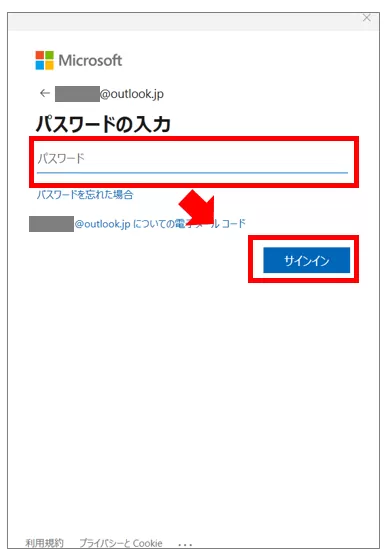 ① Microsoftアカウント へログイン