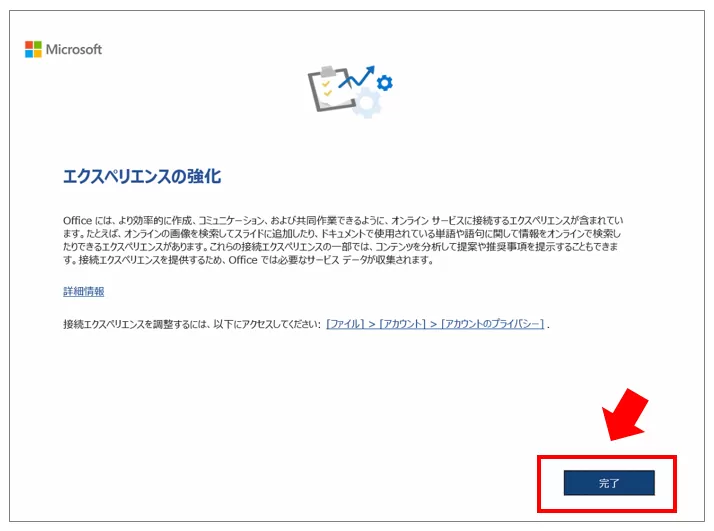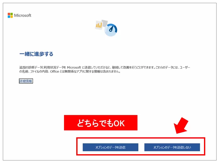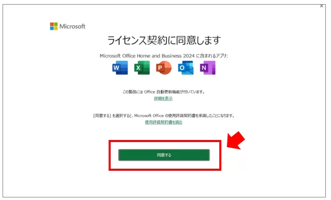 「Office 2024 を購入した場合でも、画面上に『Microsoft 365』と表示されることがありますが、これは仕様のためそのまま進めて問題ありません。」