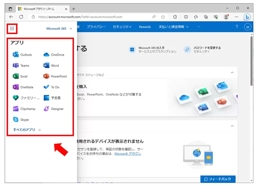 Google ChromeやSafariなどのブラウザで Microsoftアカウントにログインするだけで、Word、Excel、PowerPointの基本機能が利用できます。