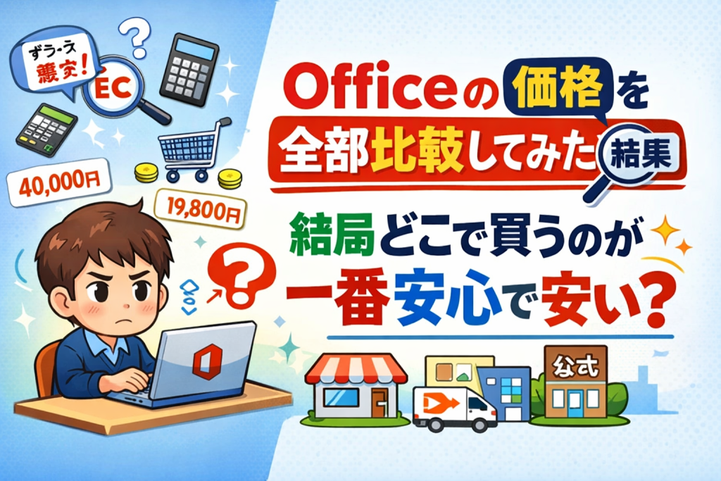 そこで本記事では、購入前に多くの方が気になる「価格・購入先・安全性」の3点に絞り、Office を一番ムダなく、失敗せずに選ぶ方法を分かりやすく整理します。