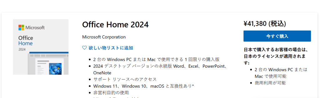 👉 法人・ビジネス利用向け Office 2024 家庭及び商用版 はこちら