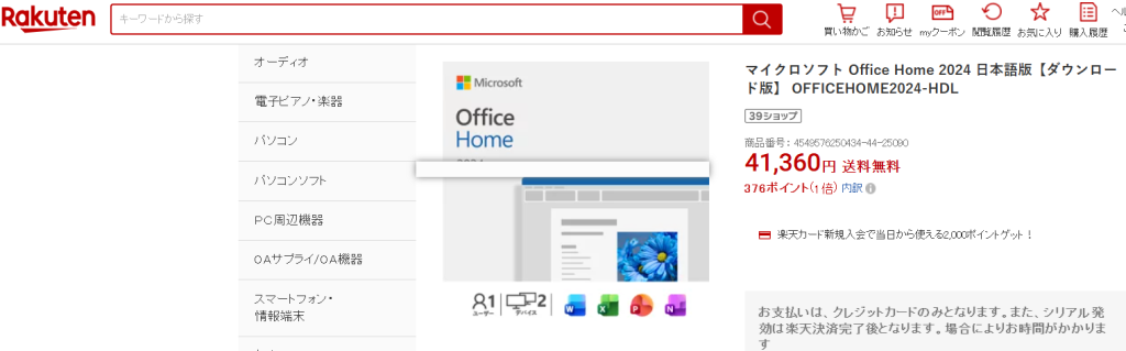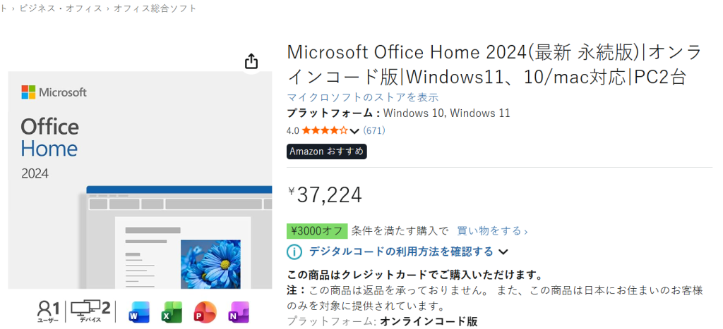 おすすめは「Office 2024 家庭及び商用版」です。
