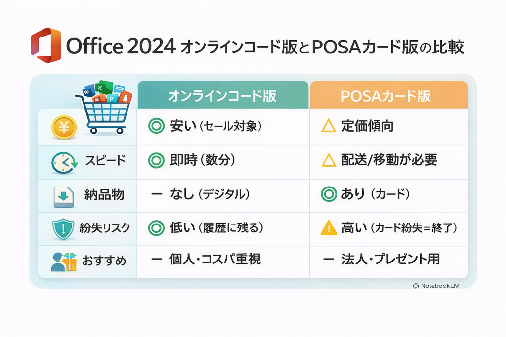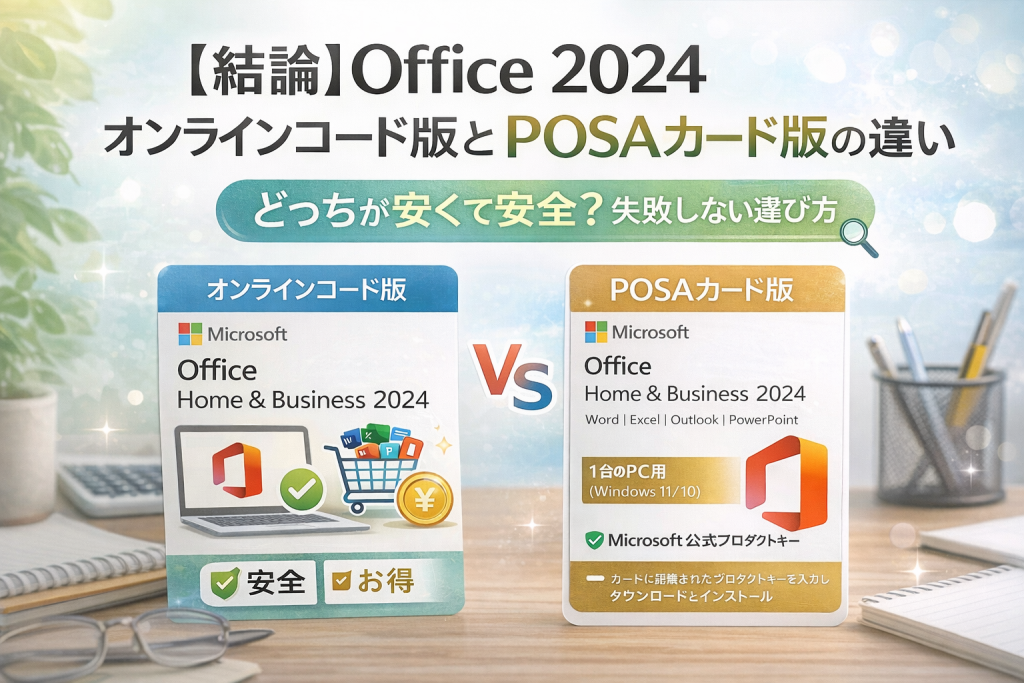 【結論】Office 2024 オンラインコード版とPOSAカード版の違い|どっちが安くて安全?失敗しない選び方
