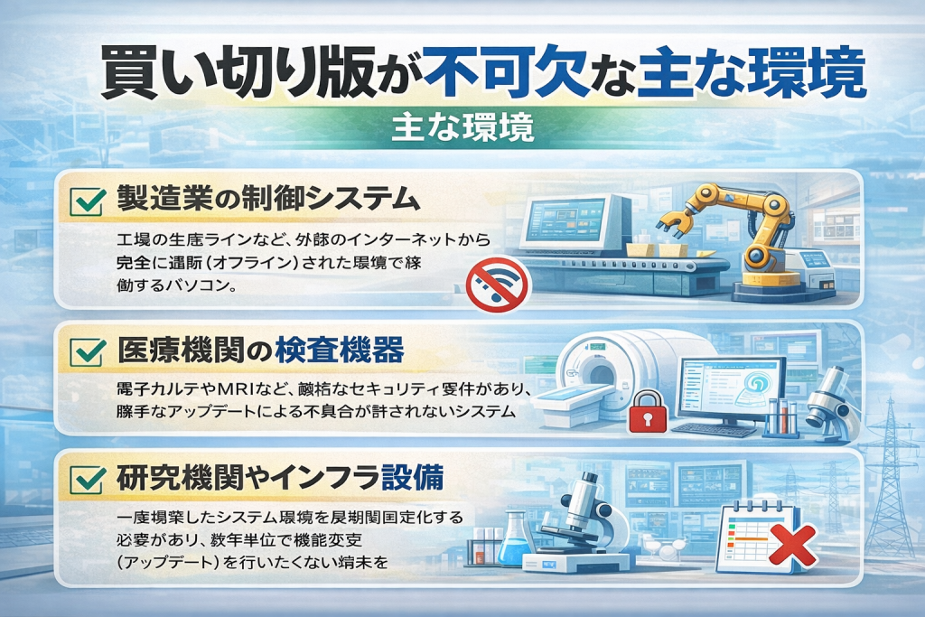 買い切り版が不可欠な主な環境
