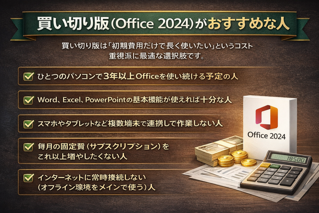 ① 買い切り版(Office 2024)がおすすめな人