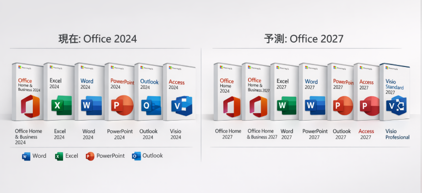 現時点でMicrosoftからの正式な発表はありませんが、過去のリリースパターンや現在の製品ラインナップから、Office 2027 は 2027年10月頃 に発売される可能性が高いと予測されます。