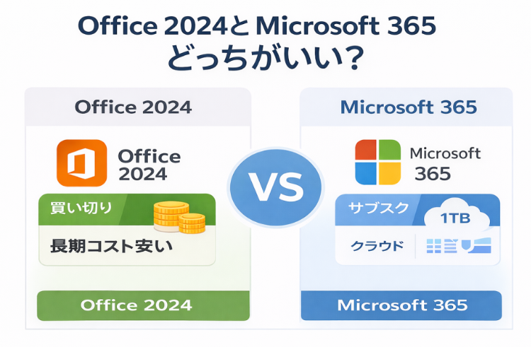 2026年現在、オフィスソフトの選択肢は大きく分けて「買い切り型Office 2024」か「サブスクリプション型Microsoft 365」の2つです。