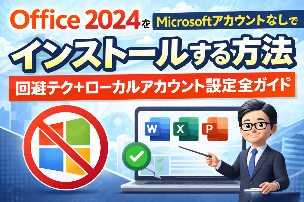 「Office 2024をインストールしたいけれど、Microsoftアカウントを作りたくない」「普段使っているローカルアカウントのままOfficeを使いたい」とお悩みではありませんか?