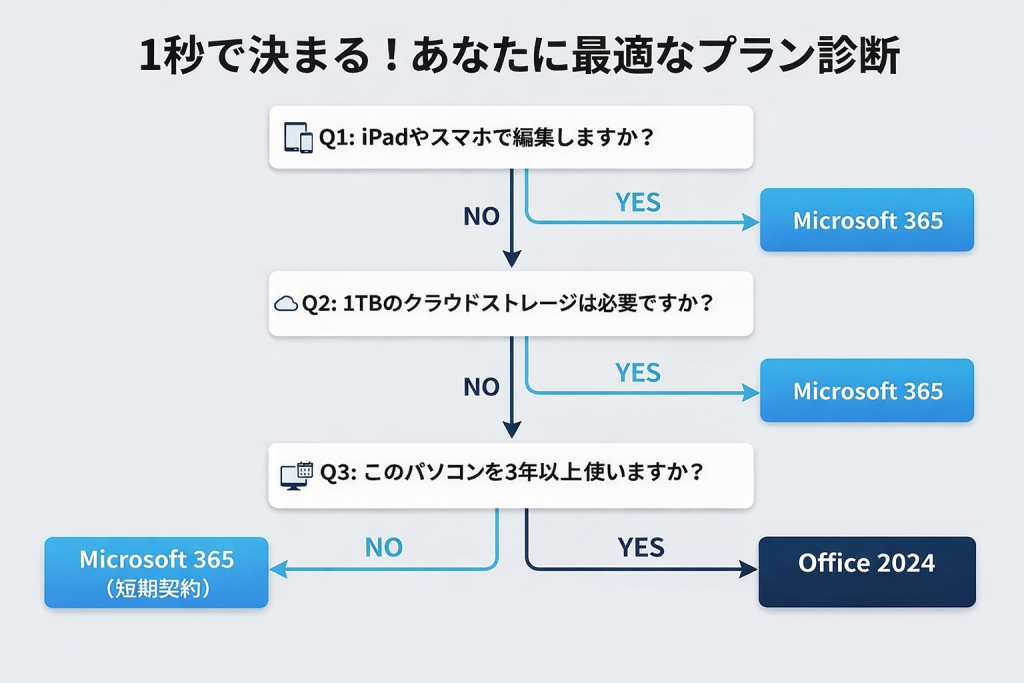 Office 2024 と Microsoft 365、どっちを選ぶべき?(診断チャート)