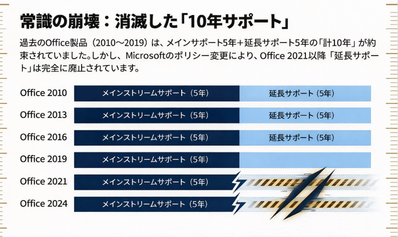 従来のOfficeでは「5年+5年(延長)」という仕組みでしたが、