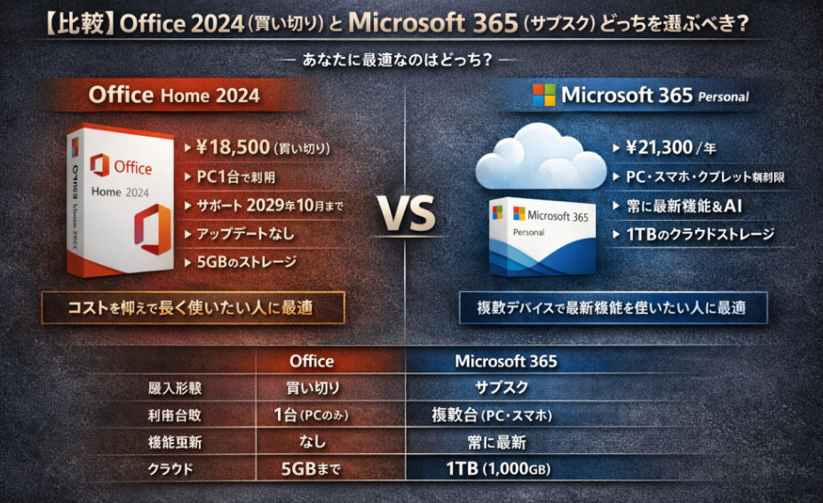 Microsoft 365 と Office 2024 の違い【プランの比較/どっちがいい?】