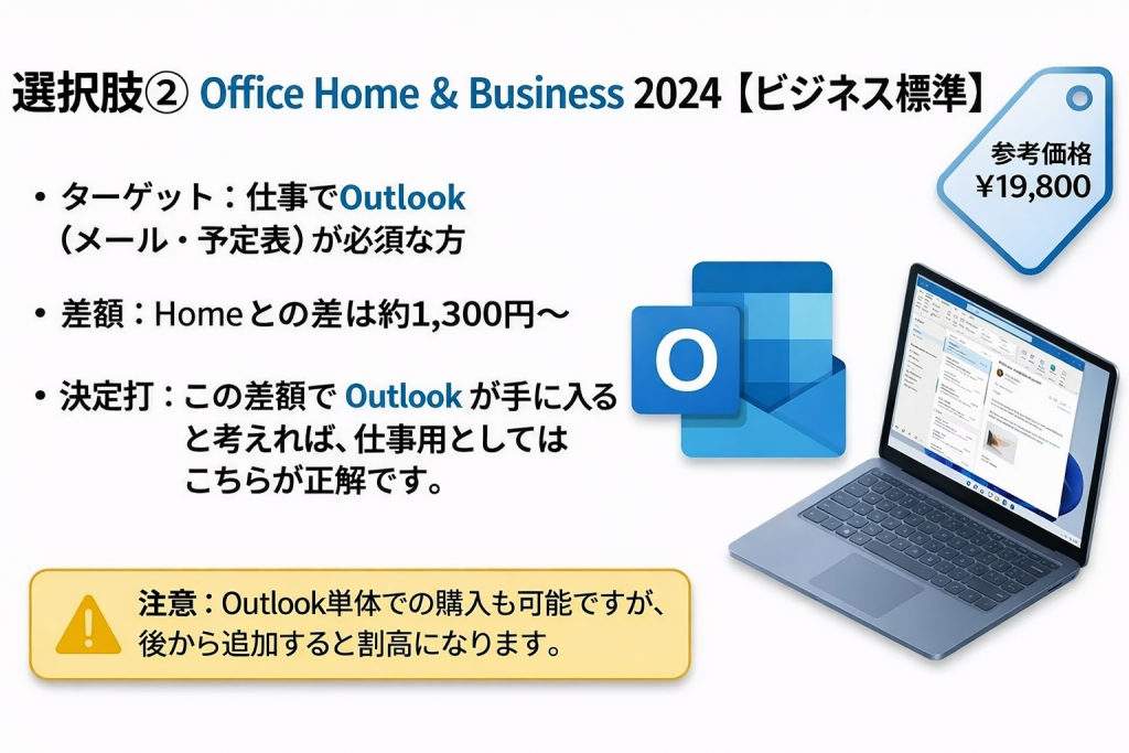 ② 仕事でOutlook必須なら、 Office Home & Business 2024