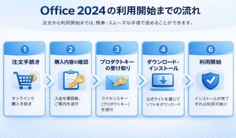 Office 2024は、購入から利用開始までシンプルな流れで進めることができます。