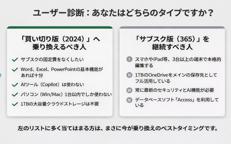 【結論】Office 2024(買い切り版)へ乗り換えるべき人