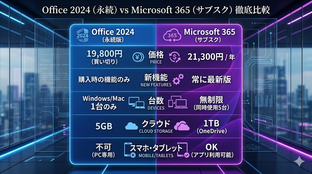 Microsoft365 と Office2024 の比較と選び方【違いは何?どっちがいいの?】