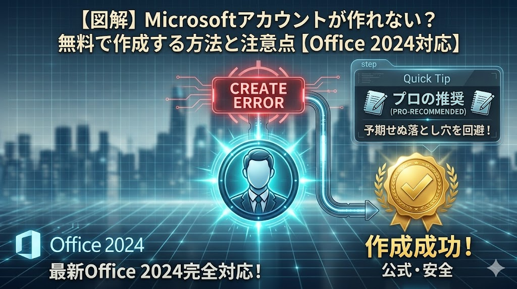 【図解】Microsoftアカウントが作れない?無料で作成する方法と注意点【Office 2024対応】