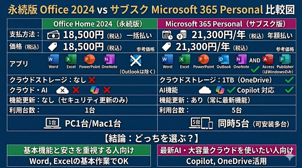 Microsoft365 と Office2024 の比較と選び方【違いは何?どっちがいいの?】