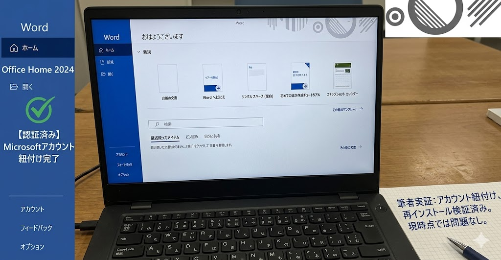 実際に確認した範囲では、上記の流れでスムーズにインストール・認証が完了し、WordやExcelも問題なく使用できることが確認できました。