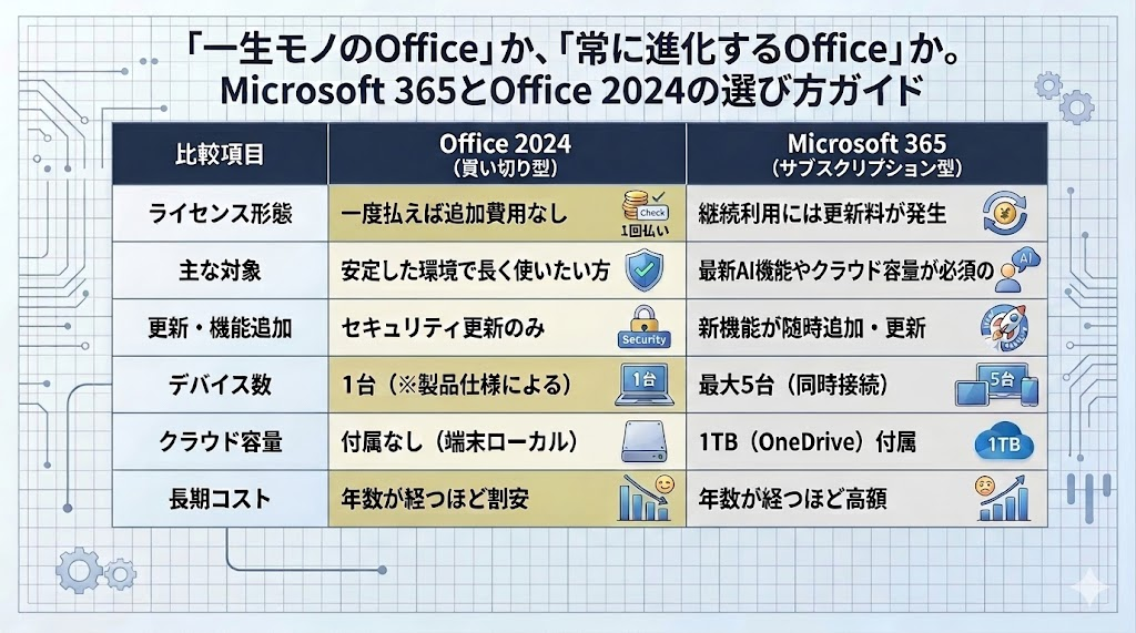 Microsoft365 と Office2024 の比較と選び方【違いは何?どっちがいいの?】